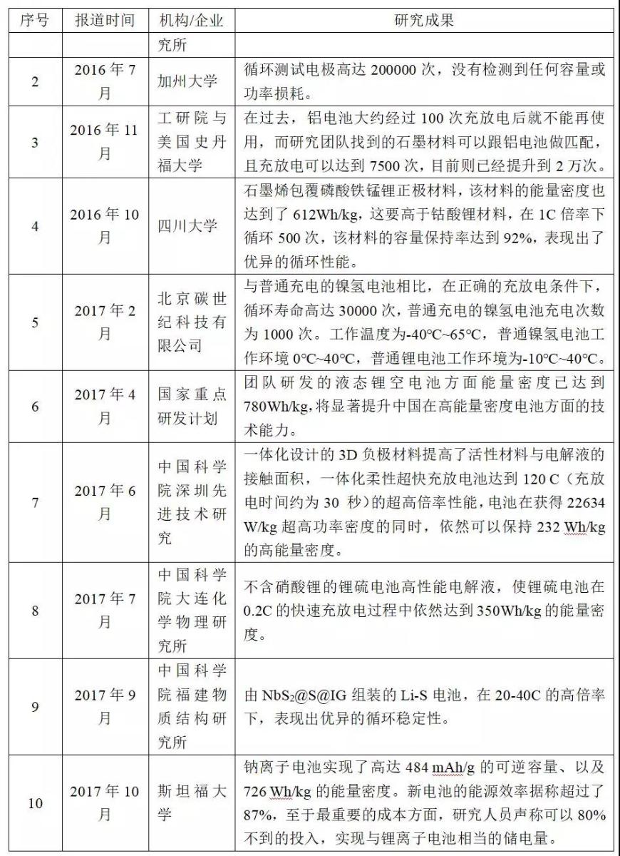 表5國內(nèi)外新型電池研發(fā)情況