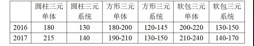 經(jīng)過一段時間的發(fā)展,磷酸鐵鋰和三元鋰電池的技術(shù)水平得到明顯提升。在成本方面,磷酸鐵鋰電池組價格從2017年年初的1.8-1.9元/Wh下降到年底的1.45-1.55元/Wh。三元動力電池包價格從年初的1.7-1.8元/Wh下降到年底的1.4-1.5元/Wh。