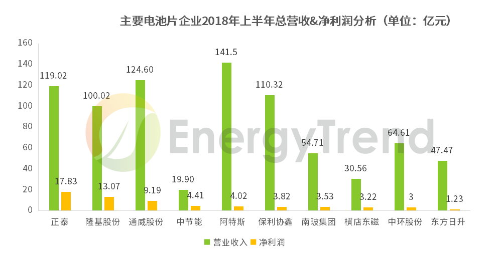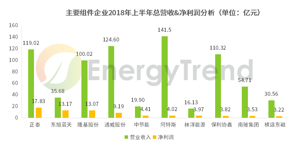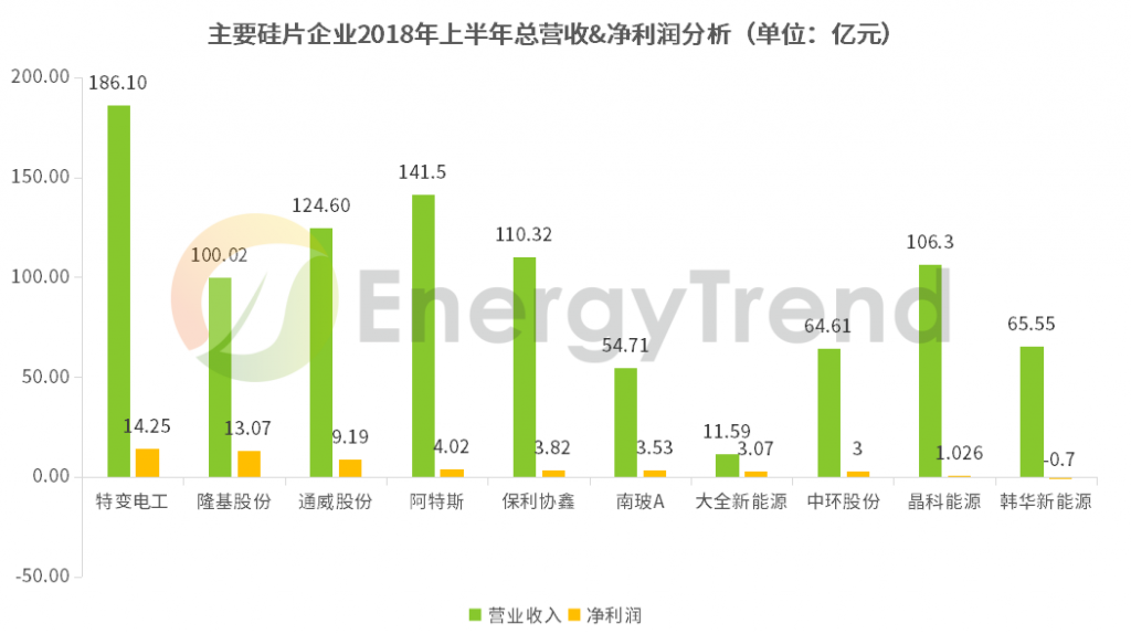 以下是EnergyTrend根據(jù)各企業(yè)的財(cái)報(bào)數(shù)據(jù)整理的硅片、電池片、組件三個(gè)環(huán)節(jié)主要企業(yè)的營(yíng)收及凈利潤(rùn)數(shù)據(jù):