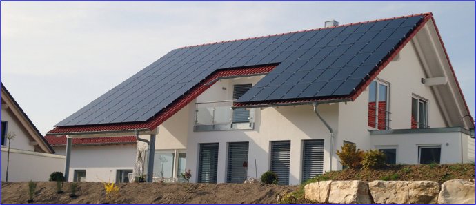 圖示是位于德國Backnang的一個(gè)普通建筑屋頂光伏電站,使用了113塊85瓦的薄膜電池,裝機(jī)容量為9.61kWp.當(dāng)?shù)剌椪斩葍H為1079kWh/m2/yr。