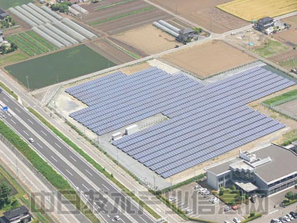 | 大林清潔能源運營的櫪木縣真岡市百萬瓦級太陽能發(fā)電設(shè)施。今年2月投入運轉(zhuǎn)。輸出功率為1.4兆瓦。 |