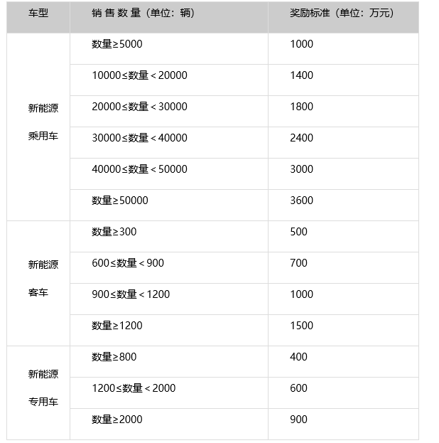 河南安陽新能源汽車按動力電池容量給予獎勵,單輛車獎勵不超過5000元