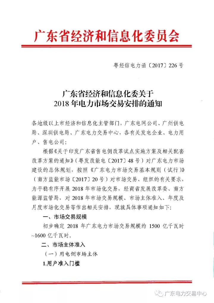中國儲能網(wǎng)訊:9月30日,廣東省經(jīng)濟和信息化委員會對2018年市場交易規(guī)模、市場主體準入、年度及月度市場化交易等作出相關(guān)安排,通知正文如下: