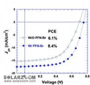 中國儲(chǔ)能網(wǎng)訊: 來自華南理工大學(xué)發(fā)光材料與器件國家重點(diǎn)實(shí)驗(yàn)室、阿克倫大學(xué)和Bruker集團(tuán)納米表面實(shí)驗(yàn)室的學(xué)者日前公布了在高分子太陽能電池領(lǐng)域的最新研究進(jìn)展,通過采用共軛聚電解質(zhì)PBDT-DTNT和富勒烯衍生物電子受體PC71BM,該團(tuán)隊(duì)制作出了轉(zhuǎn)換效率8.4%的倒置結(jié)構(gòu)(或稱反相結(jié)構(gòu))有機(jī)太陽能電池。該結(jié)果已在在英國皇家化學(xué)學(xué)會(huì)期刊上發(fā)表。