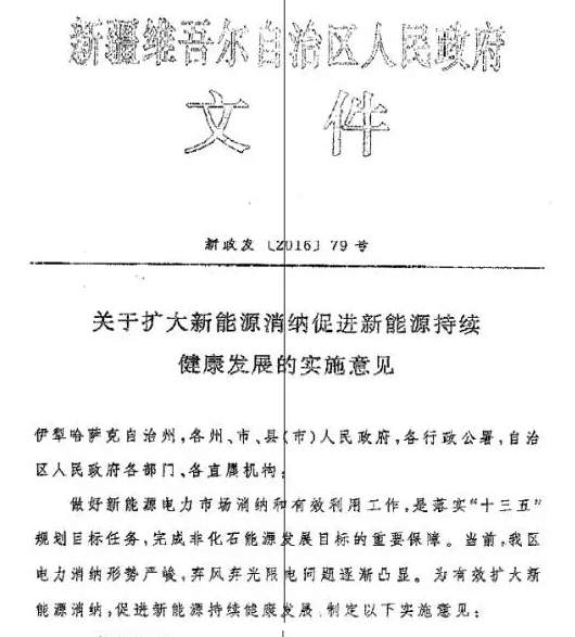 新疆維吾爾自治區(qū)人民政府《關(guān)于擴大新能源消納促進新能源持續(xù)健康發(fā)展的實施意見》
