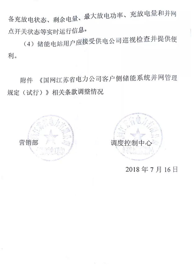中國儲(chǔ)能網(wǎng)訊:近日,國網(wǎng)江蘇電力有限公司發(fā)布對(duì)《客戶側(cè)儲(chǔ)能系統(tǒng)并網(wǎng)管理規(guī)定(試行)》相關(guān)內(nèi)容的補(bǔ)充說明,說明指出用戶儲(chǔ)能電站無需簽訂《并網(wǎng)調(diào)度協(xié)議》、無需安裝調(diào)度自動(dòng)化相關(guān)設(shè)備、改簽訂《供用電合同》補(bǔ)充協(xié)議,并對(duì)《客戶側(cè)儲(chǔ)能系統(tǒng)并網(wǎng)管理規(guī)定(試行)》條款內(nèi)容相應(yīng)做了調(diào)整。