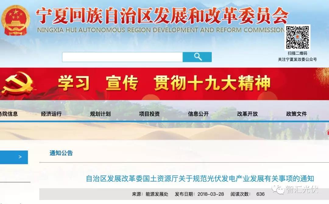 2018年2月27日,寧夏自治區(qū)發(fā)改委、國土廳關(guān)聯(lián)合發(fā)布《關(guān)于規(guī)范光伏發(fā)電產(chǎn)業(yè)發(fā)展有關(guān)事項的通知》(寧發(fā)改能源(發(fā)展)〔2018〕118號),文件提出: