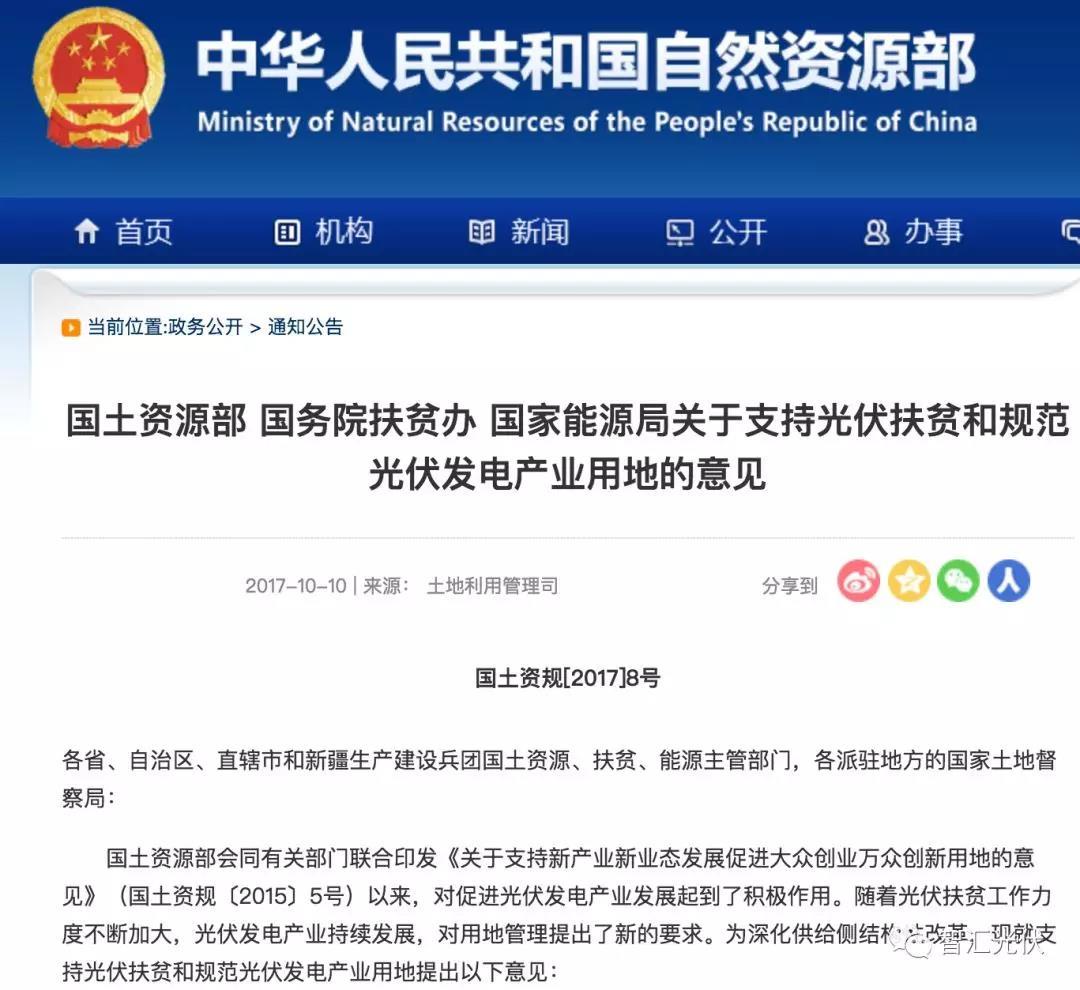 隨著光伏扶貧工作力度不斷加大,光伏發(fā)電產(chǎn)業(yè)持續(xù)發(fā)展,對用地管理提出了新的要求。為深化供給側(cè)結(jié)構(gòu)性改革,2017年10月,國土資源部、國務(wù)院扶貧辦、國家能源局日前聯(lián)合印發(fā)《關(guān)于支持光伏扶貧和規(guī)范光伏發(fā)電產(chǎn)業(yè)用地的意見》(國土資規(guī)〔2017〕8號),文件提出: