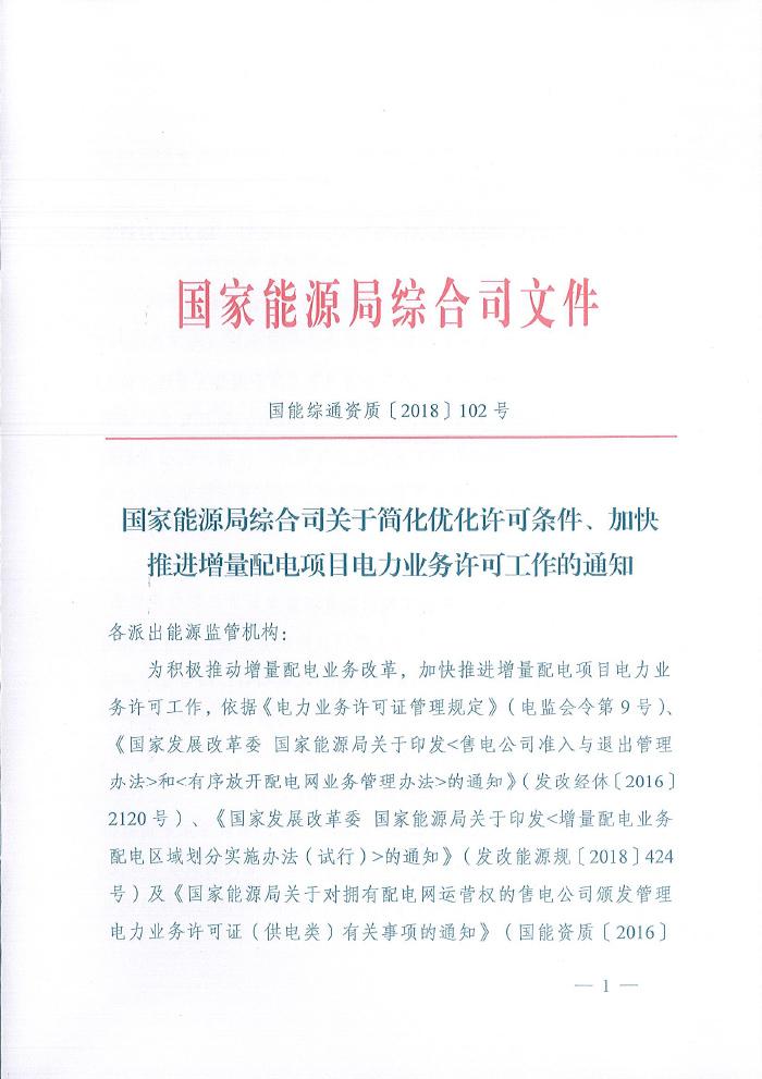 中國儲能網訊:國家能源局綜合司關于簡化優(yōu)化許可條件、加快推進增量配電項目電力業(yè)務許可工作的通知。