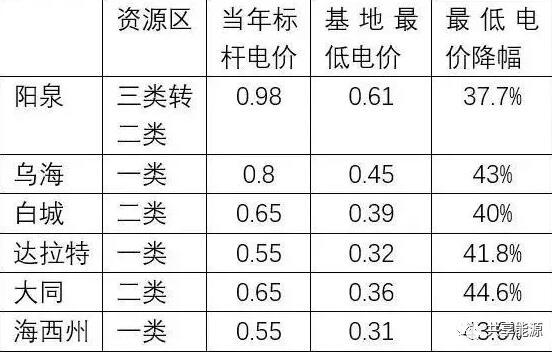 領(lǐng)跑基地投標(biāo)電價(jià)不斷刷新最低電價(jià)---第三批領(lǐng)跑基地投標(biāo)中,在白城的0.39元/千瓦時(shí)最低投標(biāo)電價(jià)之后,最低電價(jià)仍在不斷刷新,從達(dá)拉特旗的0.32元/千瓦時(shí)到大同的0.36元/千瓦時(shí),再到青?;氐?.31元/千瓦時(shí)。
