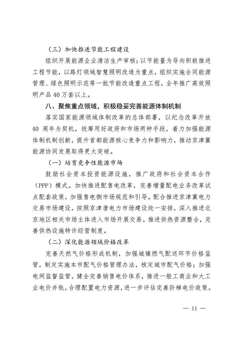 中國儲能網(wǎng)訊:北京市發(fā)改委近日印發(fā)了2018年能源工作要點,文件指出大力發(fā)展可再生能源,加快培育智能高效增長新動能;加快完善設施布局,全面提升清潔能源保障能力;精細管理能源運行,確保首都能源運行萬無一失;加大能源惠民力度,不斷提高能源安居惠民實效;推動內涵促降,持續(xù)強化能源領域節(jié)能;聚焦重點領域,積極穩(wěn)妥完善能源體制機制。具體內容如下: