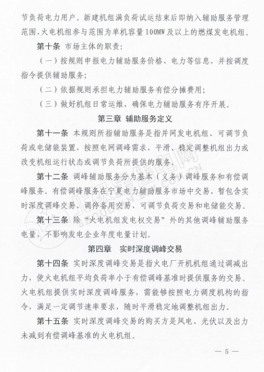 寧夏的電力輔助服務(wù)市場包含實時深度調(diào)峰交易、調(diào)停備用交易、可調(diào)節(jié)負(fù)荷交易和電儲能交易。