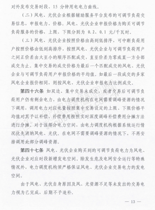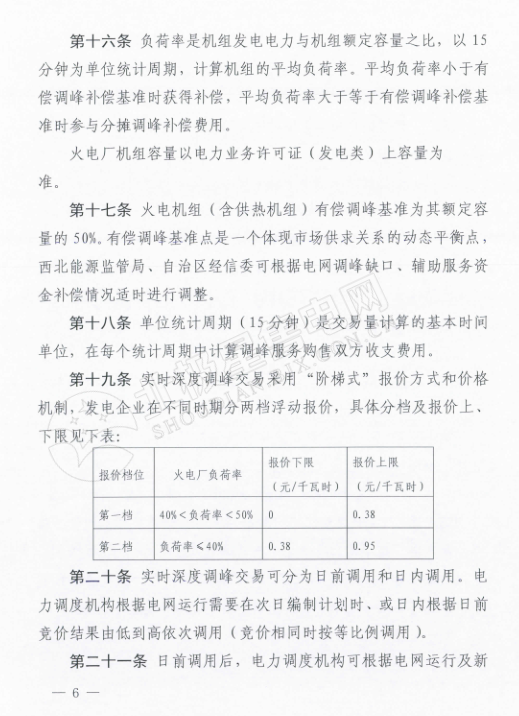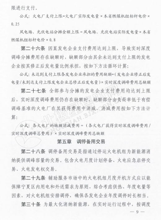 而在這份《電力輔助服務(wù)市場運營規(guī)則》里,可以看出寧夏全力支持新能源消納的態(tài)度。為火電企業(yè)的停機(jī)備用也做出了調(diào)停補(bǔ)償?shù)囊?guī)定,補(bǔ)償時間最長為10天,免去了火電企業(yè)的后顧之憂。另外,還規(guī)定了風(fēng)電、光伏企業(yè)購買到的可調(diào)節(jié)負(fù)荷電力為風(fēng)電、光伏企業(yè)對應(yīng)時段的新增發(fā)電空間,電力調(diào)度機(jī)構(gòu)須嚴(yán)格保證風(fēng)電、光伏企業(yè)交易電力的發(fā)電空間,為風(fēng)、光企業(yè)增加了一道護(hù)身符。