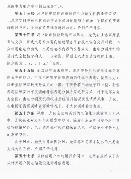 鼓勵發(fā)電企業(yè)、售電企業(yè)、電力用戶、獨立輔助服務(wù)提供商等投資建設(shè)電儲能設(shè)備,要求充電功率在1萬千瓦及以上、持續(xù)充電時間4小時以上。同樣,電儲能設(shè)施也可與風(fēng)電、光伏企業(yè)協(xié)商開展雙邊交易。交易價格的上限為0.2元/千瓦時,下限0.1元/千瓦時。