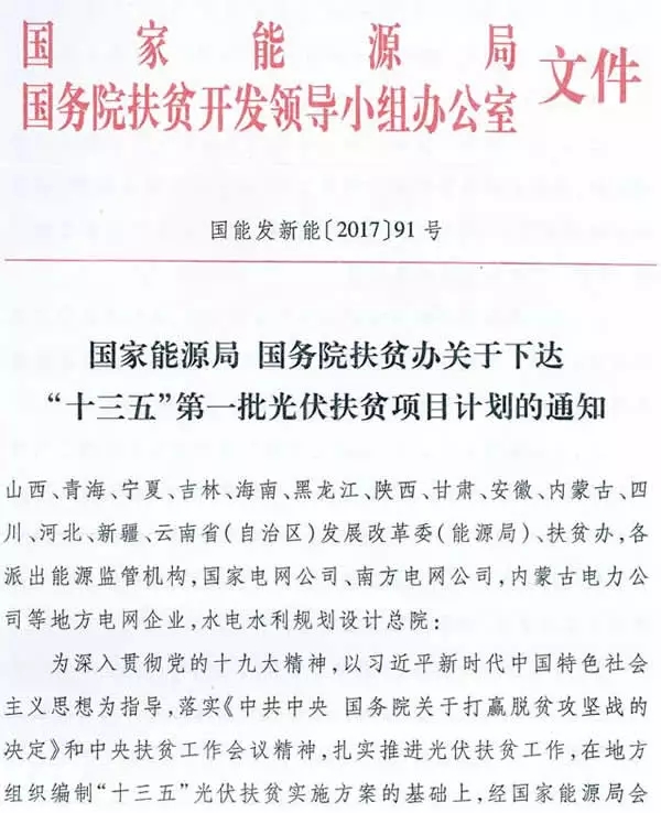 中國儲能網訊:近日,國家能源局、國務院扶貧辦聯(lián)合發(fā)布《關于下達“十三五”第一批光伏扶貧項目計劃的通知》,正式下發(fā)“十三五”第一批光伏扶貧項目。