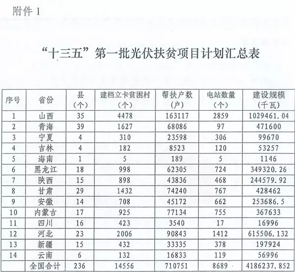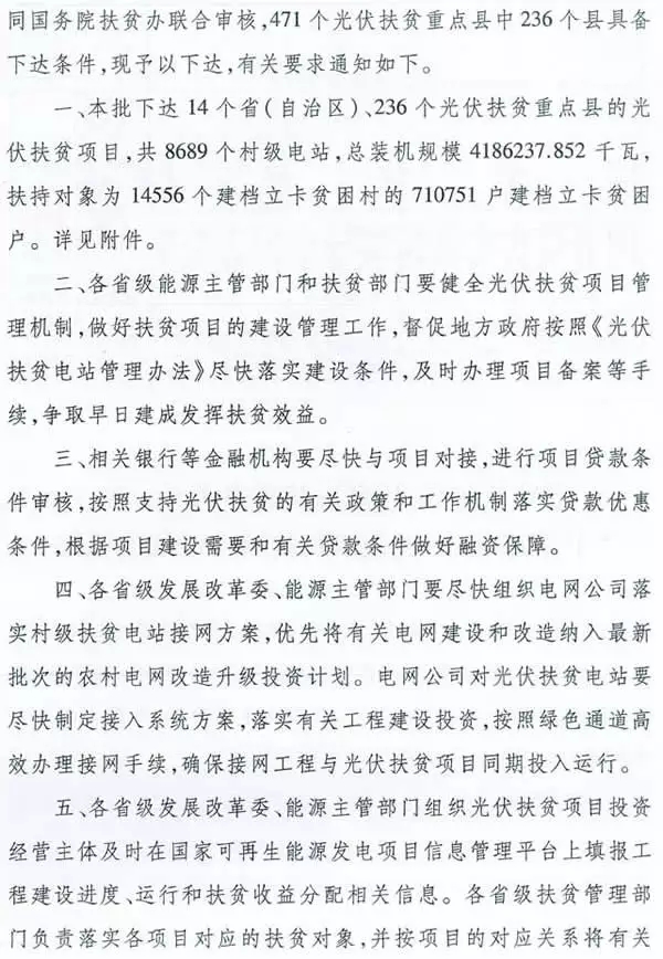 在地方組織編制“十三五”光伏扶貧實施方案的基礎上,經國家能源局會同國務院扶貧辦聯(lián)合審核,471個光伏扶貧重點縣中的236個縣具備條件。