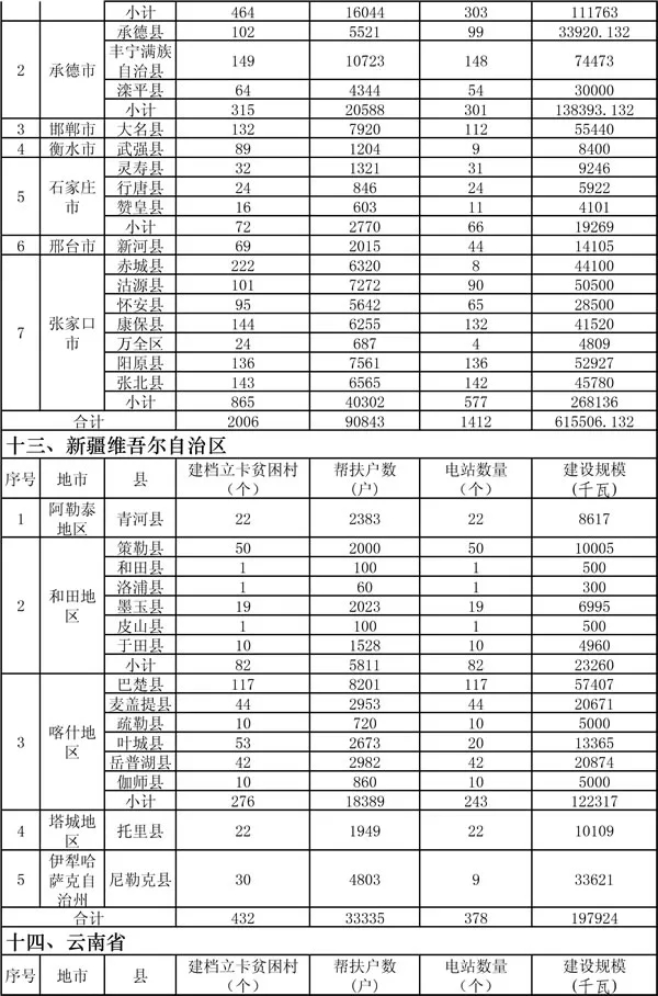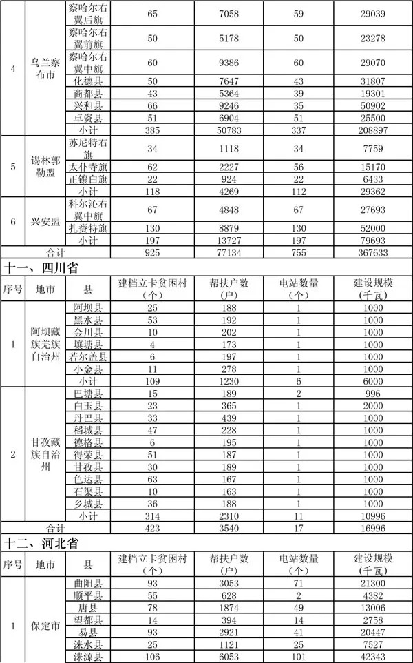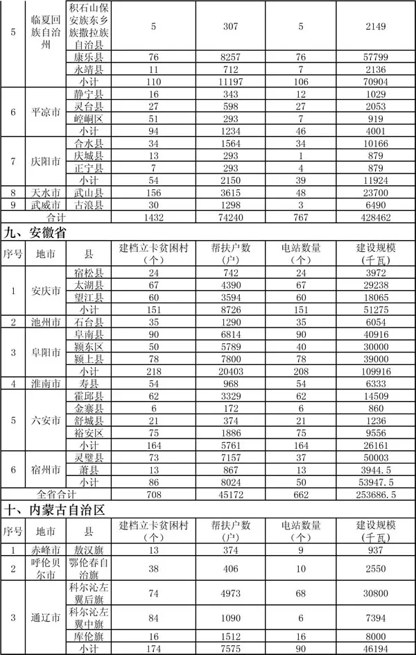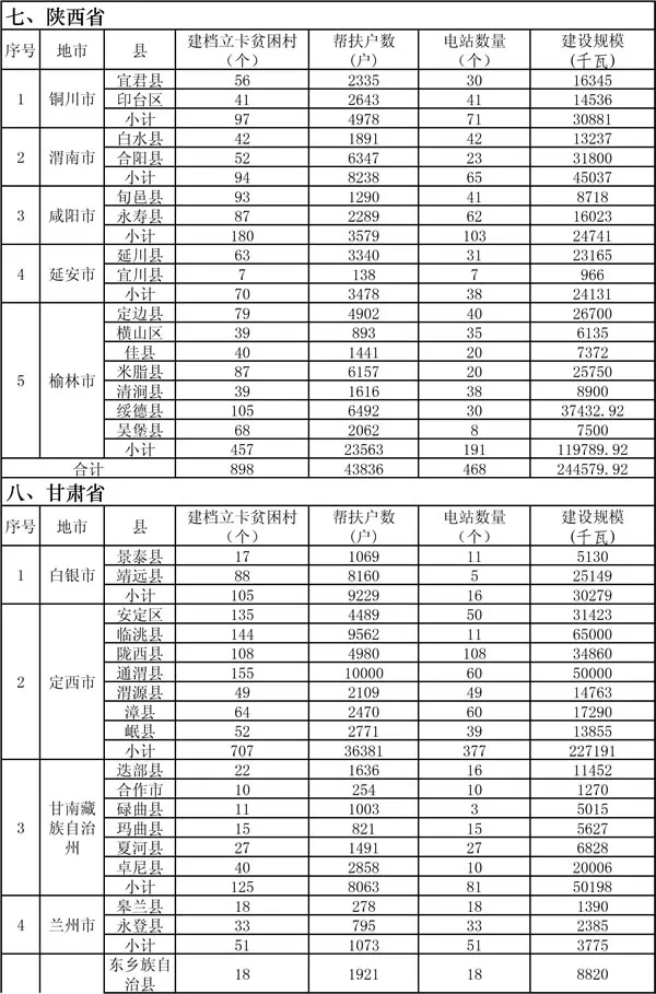 本批下達14個?。ㄗ灾螀^(qū))、236個光伏扶貧重點縣的光伏扶貧項目,共8689個村級電站,總裝機規(guī)模4186237.852千瓦,扶持對象為14556個建檔立卡貧困村的710751戶建檔立卡貧困戶。