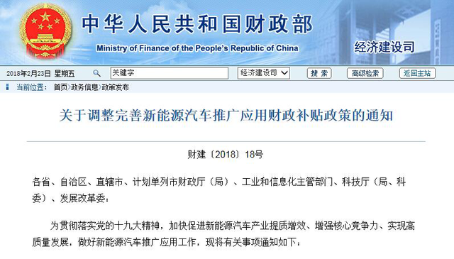 中國儲能網(wǎng)訊:伴隨著取消地方補貼和部分一線城市將推出地方補貼的流言聲,在2018年春節(jié)來臨之際,財政部、工信部、科技部、國家發(fā)改委四部委正式發(fā)出了《關(guān)于調(diào)整完善新能源汽車推廣應用財政補貼政策的通知》(下稱《通知》),這也就意味著,2018年新能源車補貼政策已經(jīng)塵埃落定。