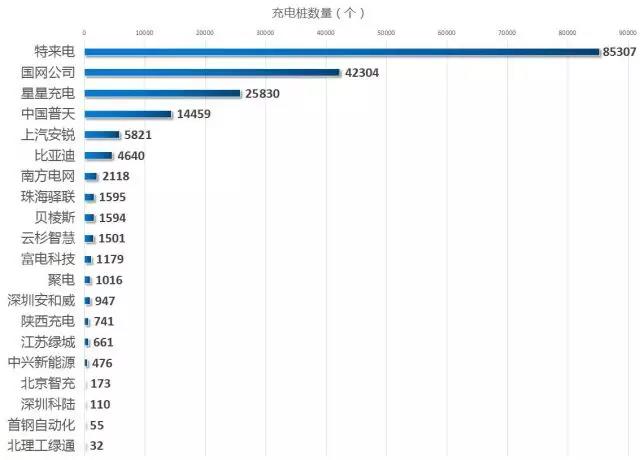 圖3.全國各運(yùn)營商充電樁總量(截至2017年9月)