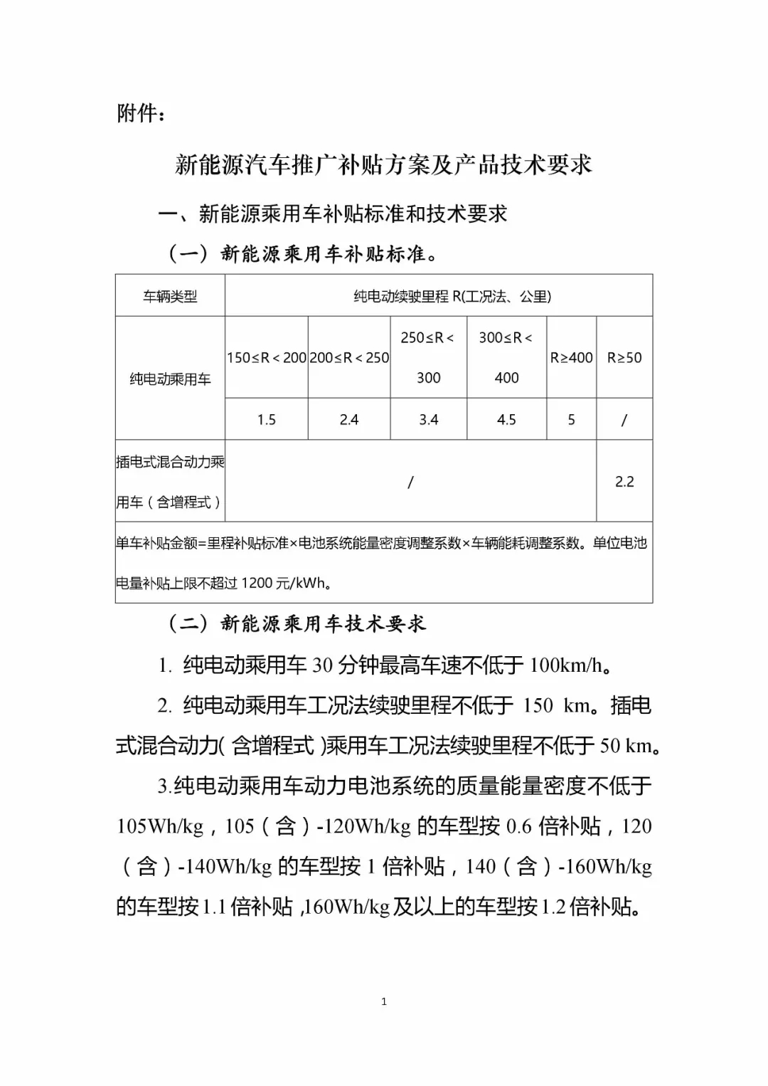 附件:新能源汽車推廣補(bǔ)貼方案及產(chǎn)品技術(shù)要求