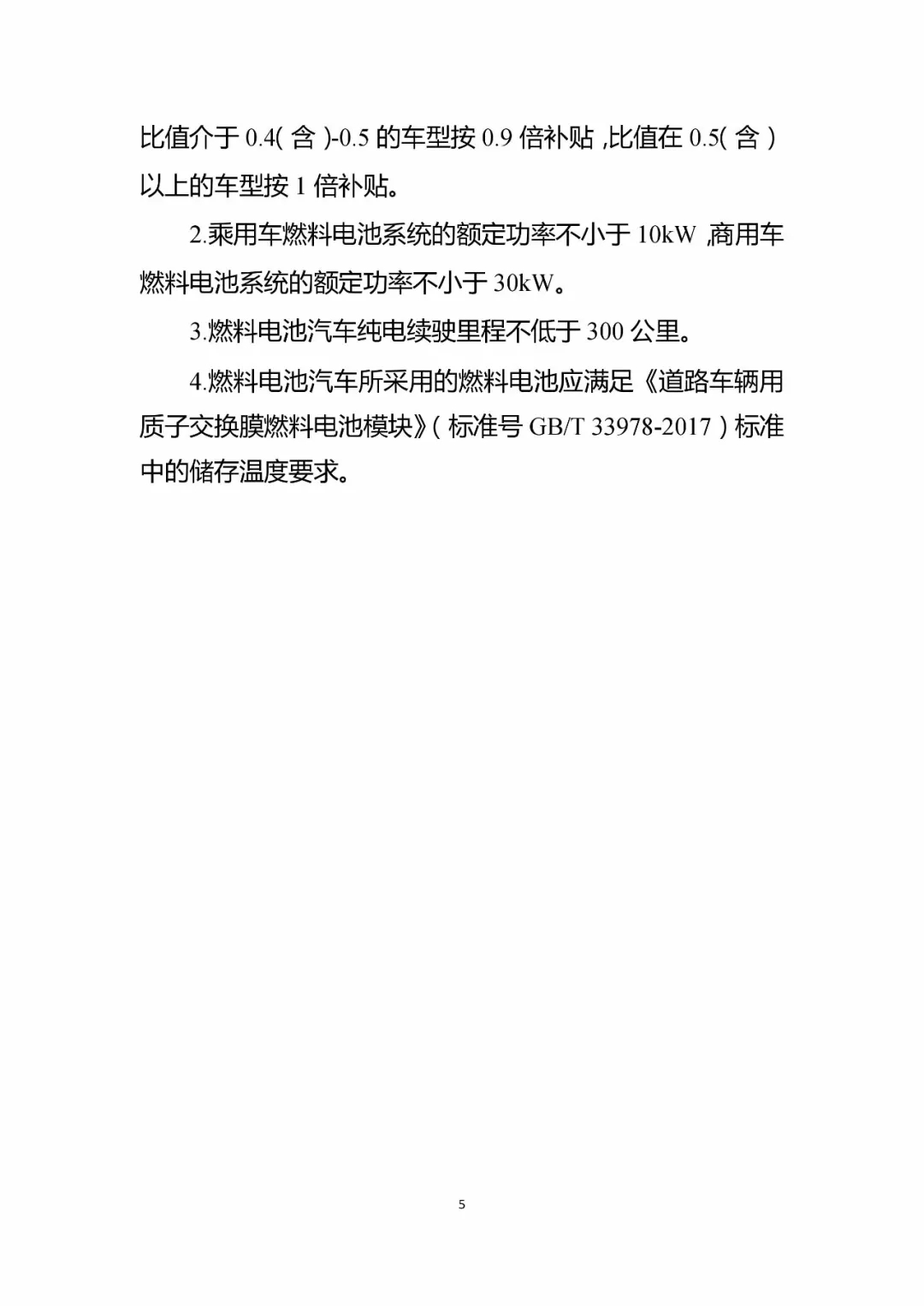 對(duì)燃料電池車而言,燃料電池乘用車依然按燃料電池系統(tǒng)的額定功率進(jìn)行補(bǔ)貼,即補(bǔ)貼標(biāo)準(zhǔn)為6000元/kw,補(bǔ)貼上限為20萬元/輛;輕型燃料電池客車/貨車以及大中型客車/中重型貨車依然采用定額補(bǔ)貼方式,補(bǔ)貼上限分別為30萬元/輛和50萬元/輛。