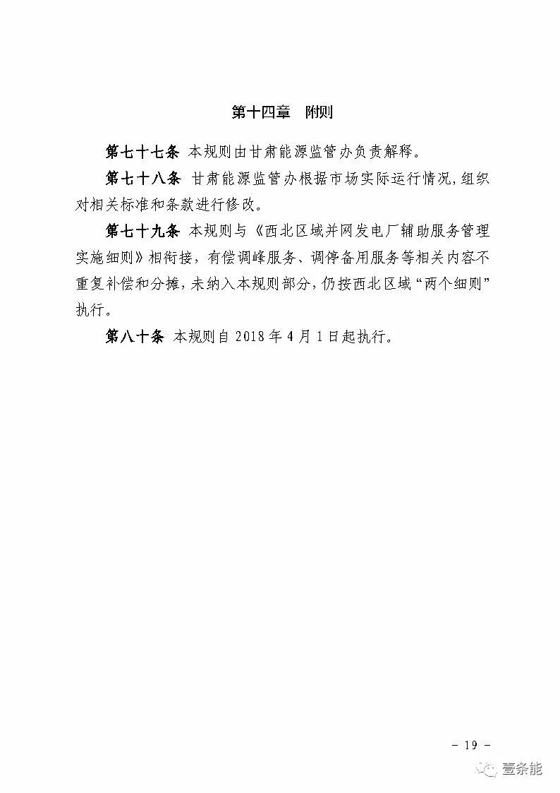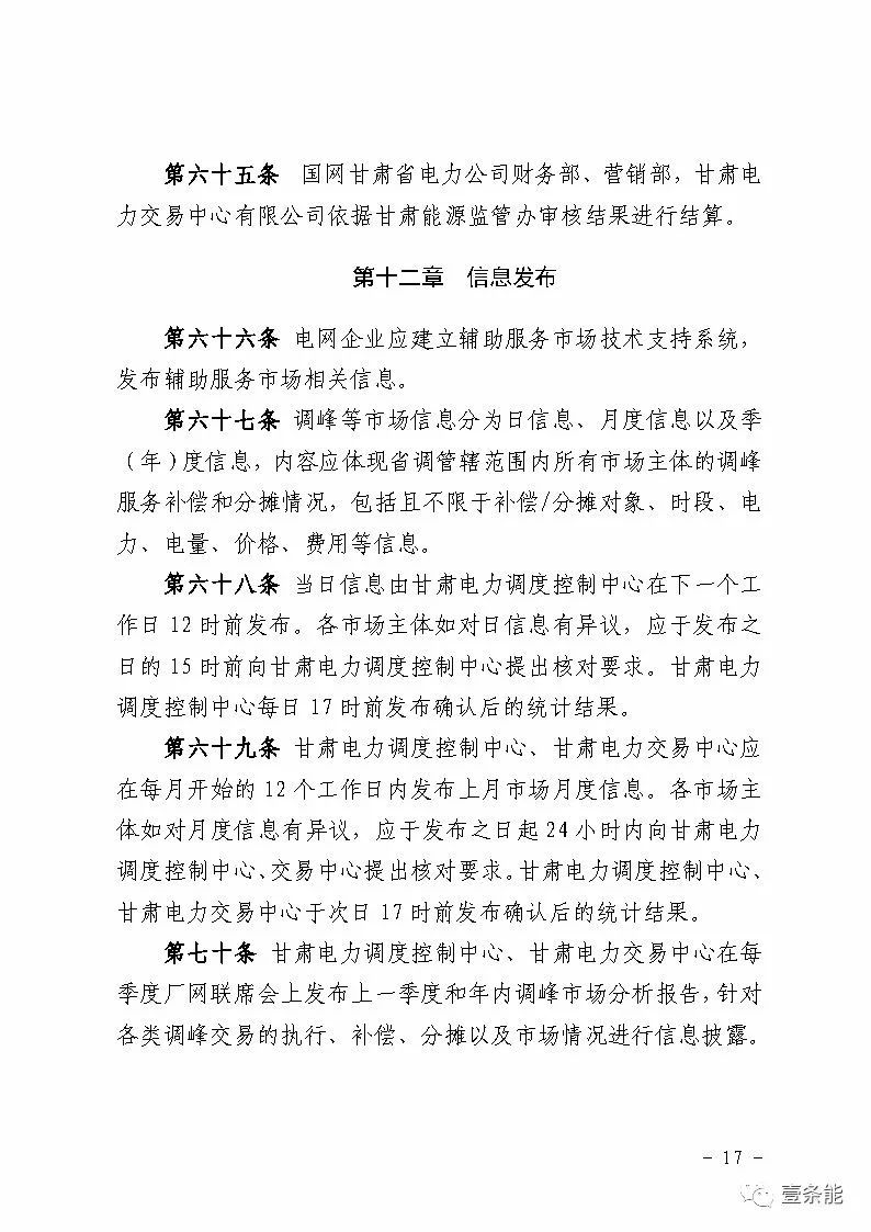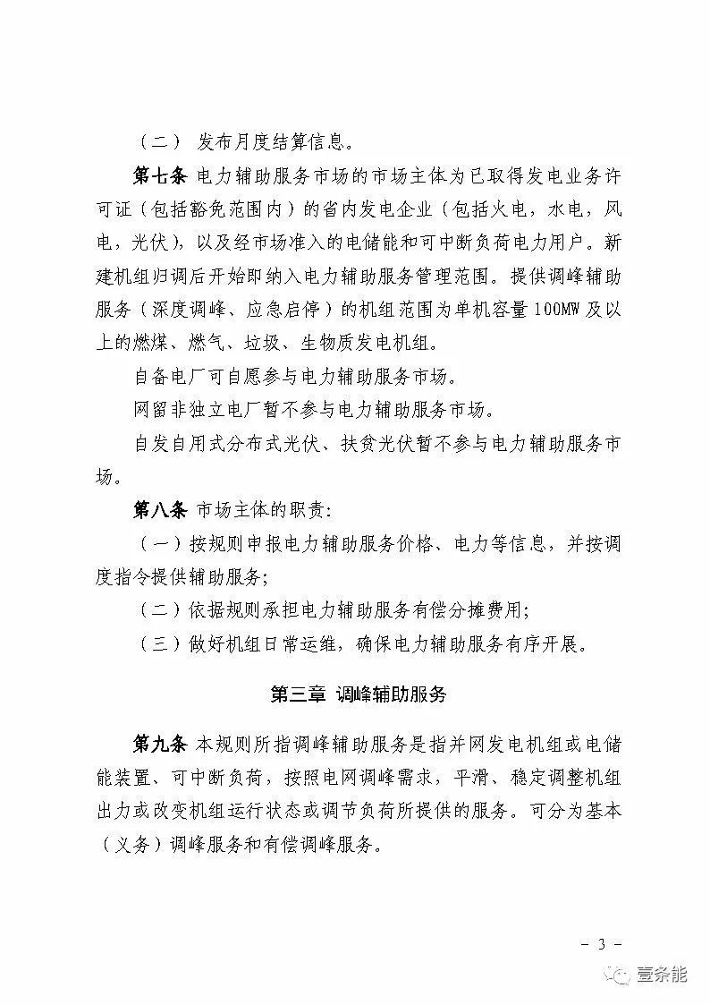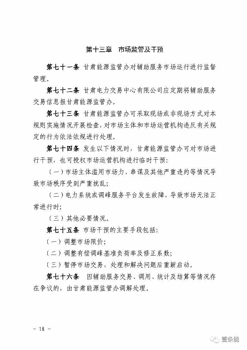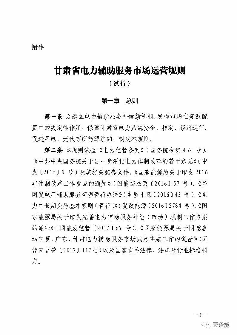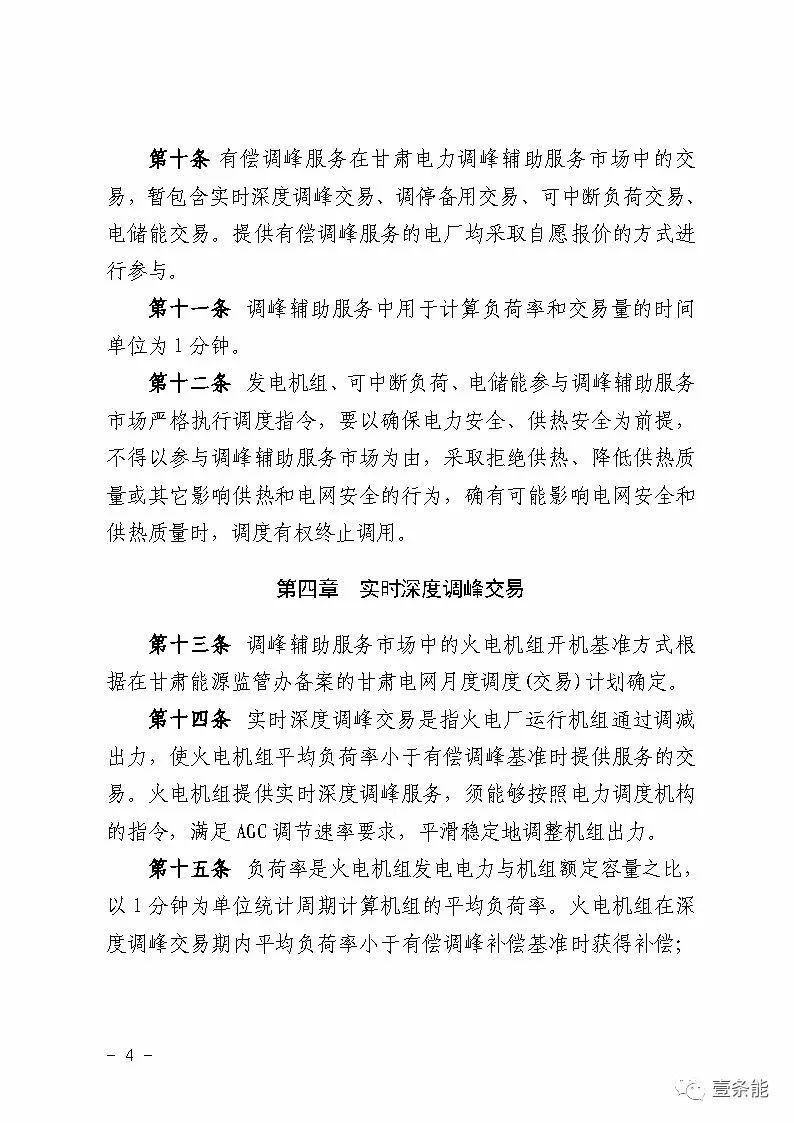 中國儲能網(wǎng)訊:國家能源局甘肅監(jiān)管辦日前發(fā)布了《甘肅省電力輔助服務(wù)市場運營規(guī)則(試行)》,于2018年4月1日起執(zhí)行。電力輔助服務(wù)市場的市場主體為已取得發(fā)電業(yè)務(wù)許可證的省內(nèi)發(fā)電企業(yè)(包括火電、水電、風(fēng)電、光伏),以及經(jīng)市場準入的電儲能和可中斷負荷電力用戶。自備電廠可自愿參與電力輔助服務(wù)市場。網(wǎng)留非獨立電廠暫不參與電力輔助服務(wù)市場。自發(fā)自用式分布式光伏、扶貧光伏暫不參與電力輔助服務(wù)市場。