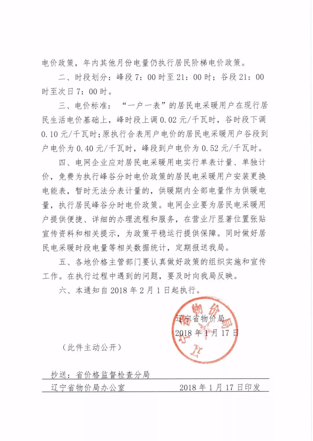 遼寧省關(guān)于對(duì)居民電采暖用戶試行峰谷分時(shí)電價(jià)政策的通知