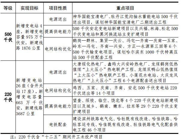 6.建設(shè)堅(jiān)強(qiáng)智能電網(wǎng)。建成齊南至興安500千伏向扎魯特匯集電力通道,謀劃以哈爾濱為起點(diǎn)的特高壓外送通道。構(gòu)建以中西部負(fù)荷為中心的東、西部500千伏電網(wǎng)環(huán)網(wǎng)結(jié)構(gòu)。繼續(xù)優(yōu)化220千伏電網(wǎng)結(jié)構(gòu),除大興安嶺和伊春地區(qū),其他11個(gè)地區(qū)均將形成以1座或多座500千伏變電站為中心的220千伏網(wǎng)架,滿足負(fù)荷增長和電源送出需求。加快城市配電網(wǎng)建設(shè)改造,提高供電可靠性。加大農(nóng)網(wǎng)改造升級力度,著力滿足農(nóng)村生產(chǎn)生活日益增長的用電需求,提升供電質(zhì)量。適應(yīng)新能源、分布式電源和多元化負(fù)荷發(fā)展需要,提高電網(wǎng)智能化水平,提升能源利用率。推進(jìn)分布式能源網(wǎng)絡(luò)、新能源微電網(wǎng)建設(shè)。在具備條件的地區(qū),推動(dòng)建設(shè)以用戶端自發(fā)自用為主的分布式能源網(wǎng)絡(luò)。在哈爾濱及其他新能源汽車應(yīng)用城市,建設(shè)充換電站、天然氣加注站及配套服務(wù)系統(tǒng)。