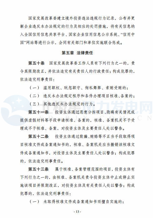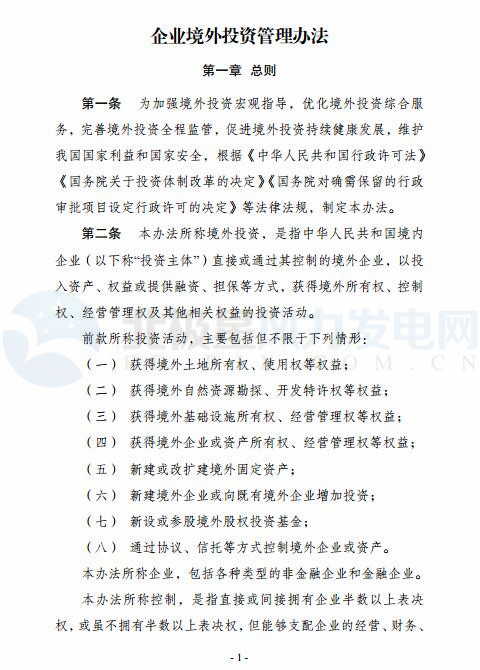 中國儲能網(wǎng)訊:國家發(fā)改委昨日(12月26日)發(fā)布中華人民共和國國家發(fā)展和改革委員會令第11號,公布《企業(yè)境外投資管理辦法》,對境外投資項目核準(zhǔn)和備案、境外投資監(jiān)管、法律責(zé)任等作出l了規(guī)定。以下為文件全文: