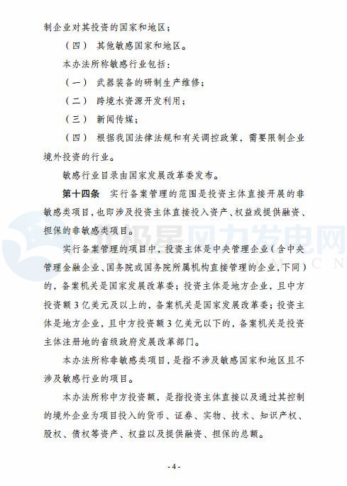 《企業(yè)境外投資管理辦法》已經(jīng)國家發(fā)展和改革委員會主任辦公會議審議通過,現(xiàn)予公布,自2018年3月1日起施行。