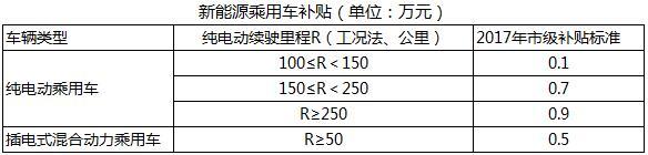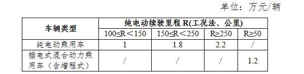 新能源乘用車補貼標準