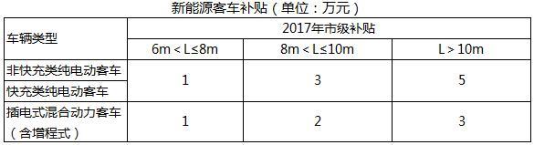 其它新能源客車補貼標準