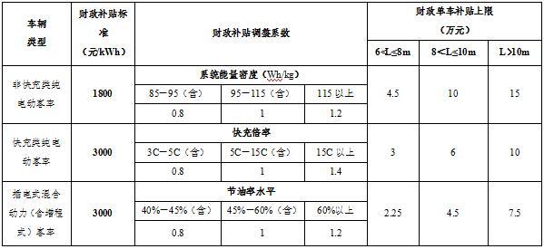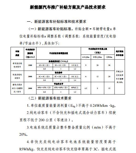 新能源客車補貼標準