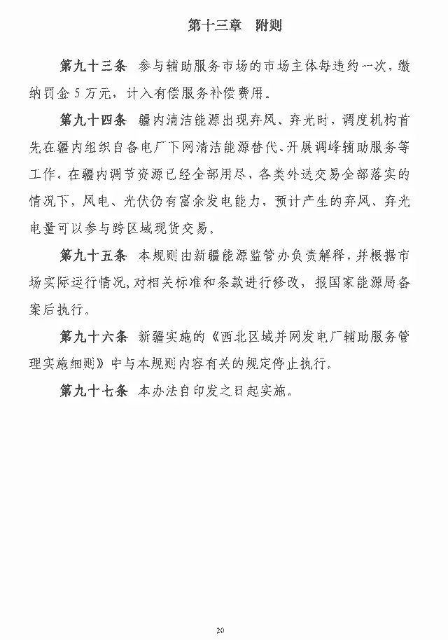 中國儲能網訊:9月28日,國家能源局新疆監(jiān)管辦公室公開發(fā)布了《新疆電力輔助服務市場運營規(guī)則(試行)》,《規(guī)則》中明確指出要充分發(fā)揮市場在資源配置中的決定性作用,促進風電、光伏等新能源消納,各省級以上電力調度機構參與新疆區(qū)域內電力電量平衡的并網發(fā)電站。