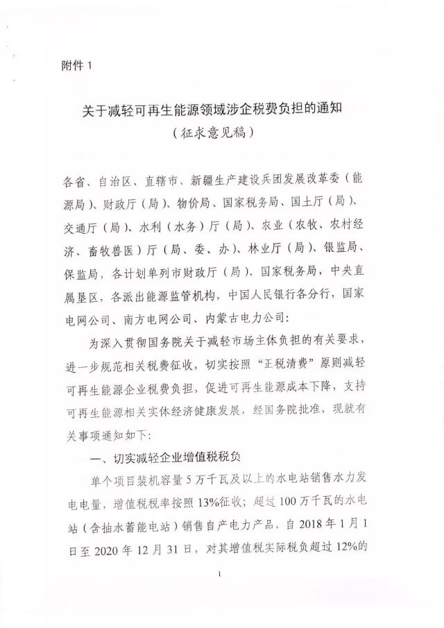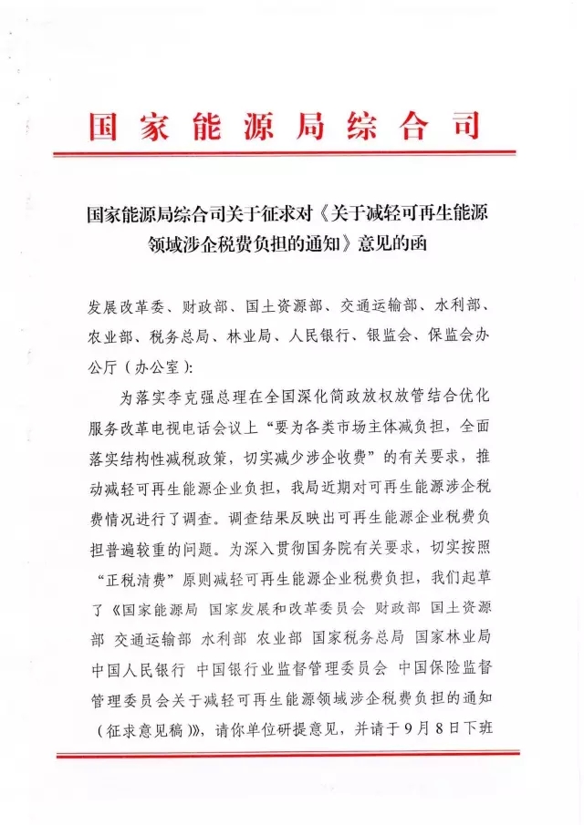 中國(guó)儲(chǔ)能網(wǎng)訊:近日,國(guó)家能源局綜合司下發(fā)了關(guān)于征求對(duì)《關(guān)于減輕可再生能源領(lǐng)域涉企稅費(fèi)負(fù)擔(dān)的通知》(以下簡(jiǎn)稱《通知》)意見的函?!锻ㄖ犯鶕?jù)可再生能源企業(yè)稅費(fèi)負(fù)擔(dān)普遍較重的實(shí)際情況,明確了可再生能源企業(yè)的稅費(fèi)減免政策。