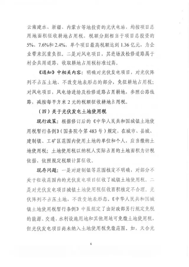 2、光伏發(fā)電項(xiàng)目占用耕地,對(duì)光伏陣列不占?jí)和恋?、不改變地表形態(tài)的部分,免征征地占用稅;