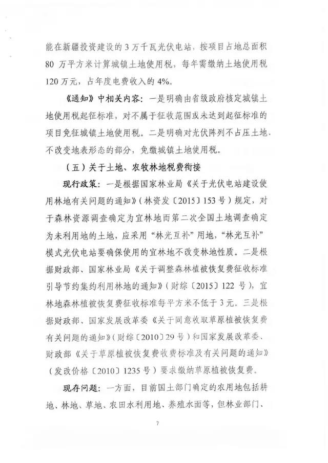 3、在城市、縣城、建制鎮(zhèn)、工礦區(qū)范圍內(nèi)使用土地建設(shè)的光伏發(fā)電項(xiàng)目,由省級(jí)政府核定起征標(biāo)準(zhǔn),偉大建制鎮(zhèn)規(guī)模以及不在建制鎮(zhèn)規(guī)劃內(nèi)的土地上建設(shè)的,不征收城鎮(zhèn)土地使用稅;達(dá)到城鎮(zhèn)土地使用稅起征標(biāo)準(zhǔn)的,對(duì)光伏陣列不占?jí)和恋?、不改變地表形態(tài)的部分,不計(jì)入占用土地面積,免繳城鎮(zhèn)土地使用稅。