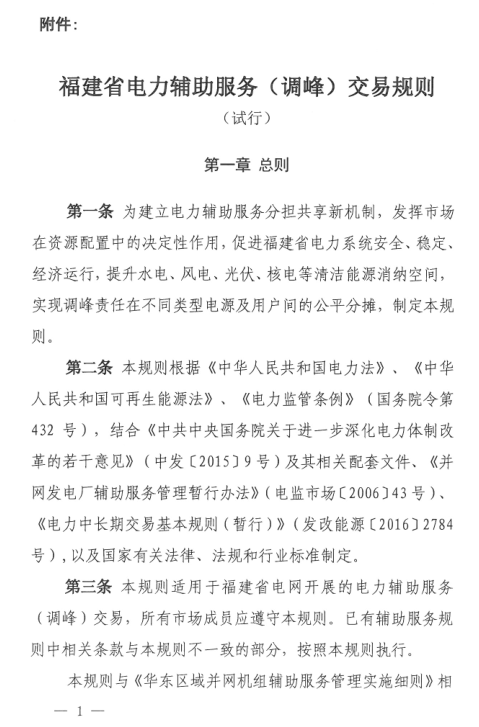 中國(guó)儲(chǔ)能網(wǎng)訊:國(guó)家能源局福建監(jiān)管辦日前印發(fā)了《福建省電力輔助服務(wù)(調(diào)峰)交易規(guī)則(試行)》。規(guī)則試行于福建省電網(wǎng)開(kāi)展的電力輔助服務(wù)(調(diào)峰)交易。本規(guī)則與《華東區(qū)域并網(wǎng)機(jī)組輔助服務(wù)管理實(shí)施細(xì)則》相銜接,不重復(fù)考核或補(bǔ)償,未綱入本規(guī)則的部分,仍按華東區(qū)域“兩個(gè)細(xì)則”執(zhí)行。逐步擴(kuò)大電力輔助服務(wù)市場(chǎng)化交易,豐富交易內(nèi)容,研究探索現(xiàn)貨市場(chǎng)交易。