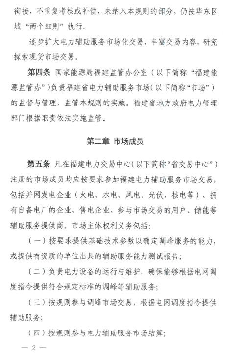 凡在福建電力交易中心注冊(cè)的市場(chǎng)成員均應(yīng)按要求參加福建電力輔助服務(wù)市場(chǎng)交易,包括并網(wǎng)發(fā)電企業(yè)(火電、水電、風(fēng)電、光伏、核電等)、擁有自備電廠(chǎng)的企業(yè)、售電企業(yè)、參與市場(chǎng)交易的用戶(hù)、儲(chǔ)能等輔助服務(wù)提供商。