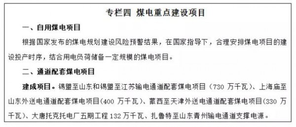 穩(wěn)步推進(jìn)煤電基地建設(shè)。綜合考慮國家能源發(fā)展戰(zhàn)略、受端電力市場需求等因素,合理安排煤電基地建設(shè)時序。重點(diǎn)圍繞鄂爾多斯、錫林郭勒、呼倫貝爾三個以電力外送為主的大型煤電基地,積極推進(jìn)高參數(shù)、大容量先進(jìn)燃煤發(fā)電機(jī)組建設(shè),新建燃煤發(fā)電項(xiàng)目原則上采用60萬千瓦及以上超超臨界機(jī)組。鄂爾多斯煤電基地重點(diǎn)推進(jìn)上海廟-山東、蒙西-天津南等輸電通道配套煤電建設(shè);錫林郭勒煤電基地重點(diǎn)推進(jìn)錫盟-山東、錫盟-江蘇等輸電通道配套煤電建設(shè);呼倫貝爾煤電基地積極啟動呼倫貝爾外送輸電通道配套煤電建設(shè)。