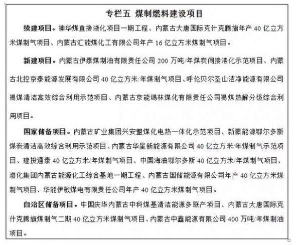 推進(jìn)煤制燃料升級示范。在現(xiàn)有煤制燃料示范項(xiàng)目的基礎(chǔ)上,按照節(jié)水、環(huán)保、高效的原則,重點(diǎn)在水煤組合條件較好的地區(qū),根據(jù)煤炭資源賦存、水資源和生態(tài)環(huán)境承載能力,按照項(xiàng)目前期工作和建設(shè)條件成熟程度,逐步推進(jìn)煤制油、煤制氣等煤制燃料產(chǎn)業(yè)高標(biāo)準(zhǔn)、高水平升級示范?!笆濉逼陂g,力爭新開工煤制油規(guī)模300萬噸左右、煤制氣規(guī)模120億立方米左右。