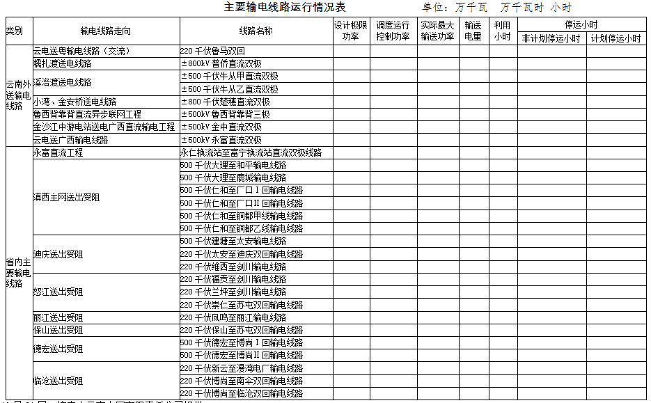 附件1、2、3由云南電網(wǎng)有限責任公司填報,其中附件2表格應包含輸電受阻地區(qū)(怒江、迪慶、麗江、大理、保山、德宏、臨滄)影響送出的主要輸電線路運行情況。