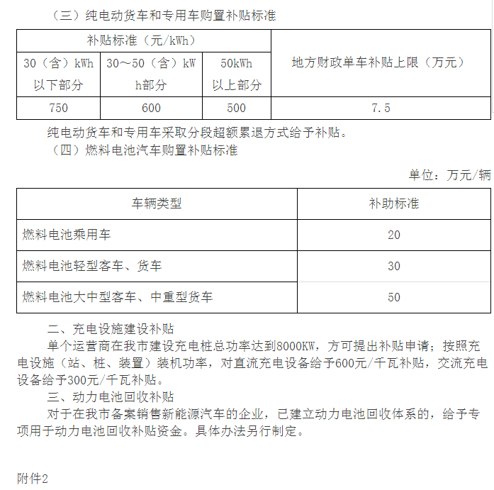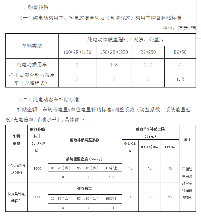 100≤R<150公里(R為標(biāo)準(zhǔn)工況續(xù)駛里程,單位:公里,下同)1萬元/輛,150≤R<250公里1.8萬元/輛,R≥250公里2.2萬元/輛。
