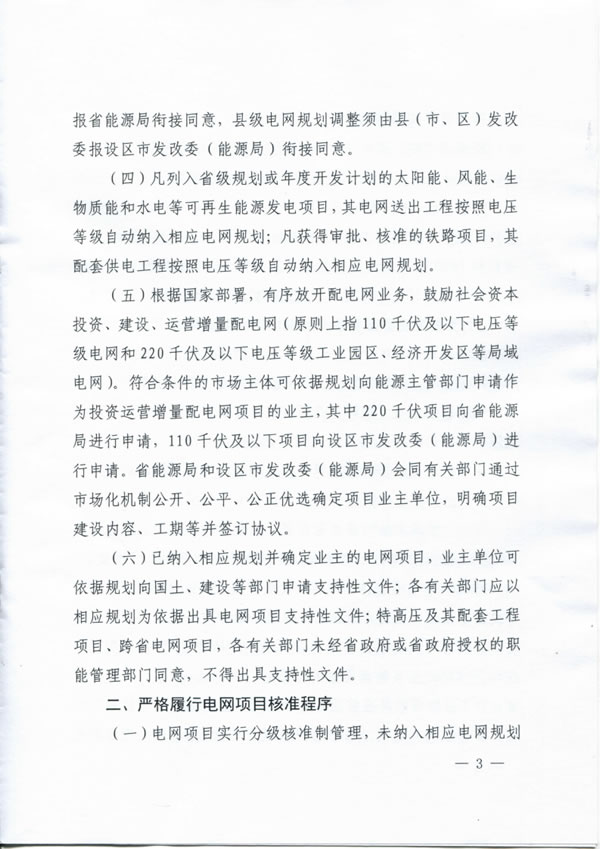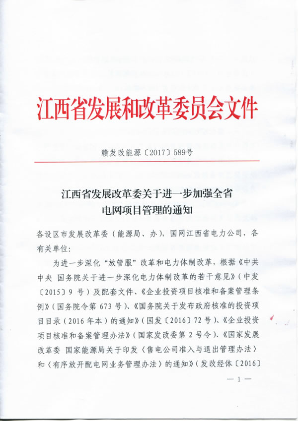 中國儲能網(wǎng)訊:近日,江西省發(fā)改委發(fā)布《關于進一步加強全省電網(wǎng)項目管理的通知》,通知中強調(diào),要有序放開配電網(wǎng)業(yè)務,鼓勵社會資本投資、建設、運營增量配電網(wǎng)(原則上指110千伏及以下電壓等級電網(wǎng)和220千伏及以下電壓等級工業(yè)園區(qū)、經(jīng)濟開發(fā)區(qū)等局域電網(wǎng))。符合條件的市場主體可依據(jù)規(guī)劃向能源主管部門申請作為投資運營增量配電網(wǎng)項目的業(yè)主,其中220千伏項目向省能源局進行申請,110千伏及以下項目向設區(qū)市發(fā)改委(能源局)進行申請。