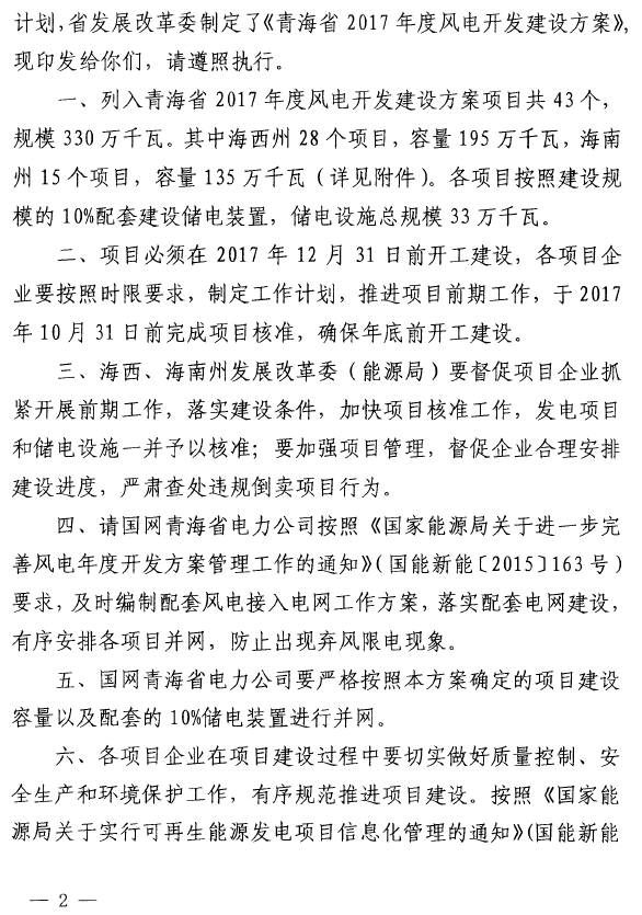 青海此次配置的43個(gè)、總計(jì)3.3GW的風(fēng)電項(xiàng)目分別位于海西州(28個(gè)、1.95GW)和海南州(15個(gè)、1.35GW)。這些項(xiàng)目被要求在2017年10月底前完成核準(zhǔn),年底前開(kāi)工建設(shè)。建成并網(wǎng)時(shí),國(guó)網(wǎng)青海電力公司將嚴(yán)格要求配套的10%儲(chǔ)電裝置進(jìn)行并網(wǎng)。