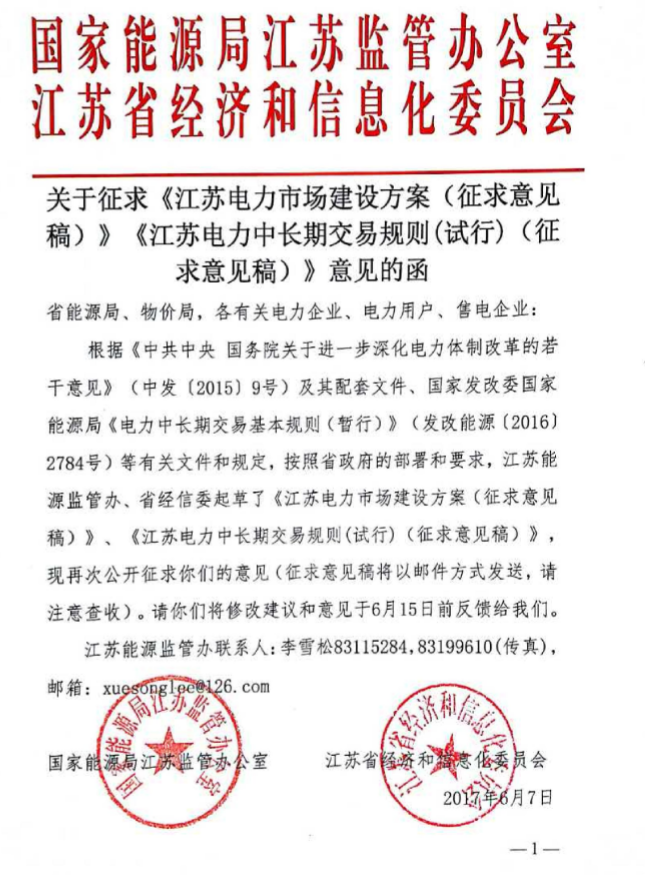 江蘇經(jīng)信委、能監(jiān)辦公布《江蘇電力市場建設方案征求意見稿》,包括階段性目標和現(xiàn)貨市場建設方案。