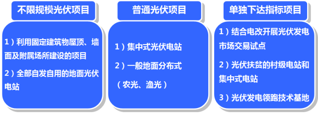 根據(jù)《關(guān)于完善光伏發(fā)電規(guī)模管理和實(shí)行競(jìng)爭(zhēng)方式配置項(xiàng)目的指導(dǎo)意見(jiàn)》(發(fā)改能源[2016]1163號(hào)),光伏項(xiàng)目的備案被分為三類(lèi):