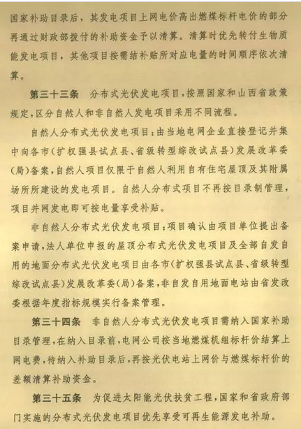 ■ 分布式光伏上網(wǎng)電量全額收購 山西發(fā)布可再生能源發(fā)電全額保障性收購暨補(bǔ)貼管理辦法