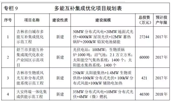 進(jìn)一步提高可再生能源電力消納能力,鼓勵利用風(fēng)、光、水、煤等資源組合優(yōu)勢,開展風(fēng)光水火儲多能互補(bǔ)系統(tǒng)一體化運(yùn)行示范。重點(diǎn)在白城、吉林、松原等具備開展多能互補(bǔ)條件的地區(qū)推進(jìn)多能互補(bǔ)示范項(xiàng)目建設(shè)。