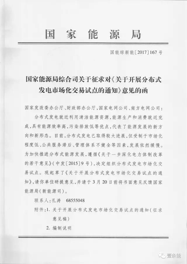 中國儲(chǔ)能網(wǎng)訊:近日,國家能源局綜合司近日下發(fā)關(guān)于征求對(duì)《關(guān)于開展分布式發(fā)電市場(chǎng)化交易試點(diǎn)的通知》意見的函。